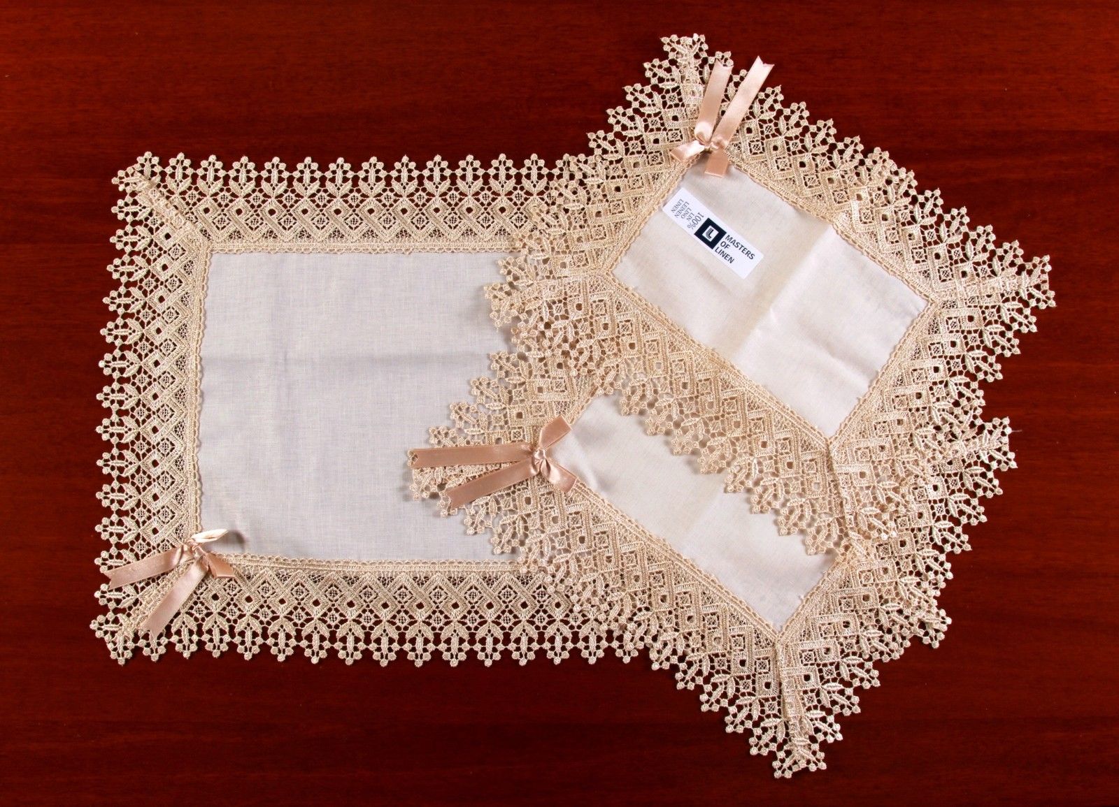 Set centrini 3 pezzi veronica in puro lino con macrame'